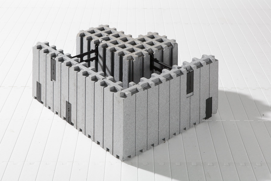 Izolacja wewnętrzna 5 cm / rdzeń betonowy 15 cm / izolacja zewnętrzna 15 cm